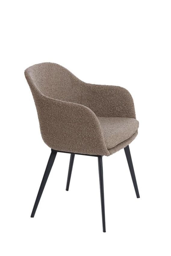 Gekenmerkt door de lichte vorm en schone esthetiek, valt deze stoel met armleuningen en een open rug op door zijn eigentijdse Scandinavische uitstraling. Het frame, behandeld met olie, geeft de ruimte een warme en uitnodigende sfeer. Om de stoel gezelliger te maken, is de zitting bedekt met een mooie beige stof. Het is een uitstekende keuze voor zowel traditionele als moderne eetkamers.