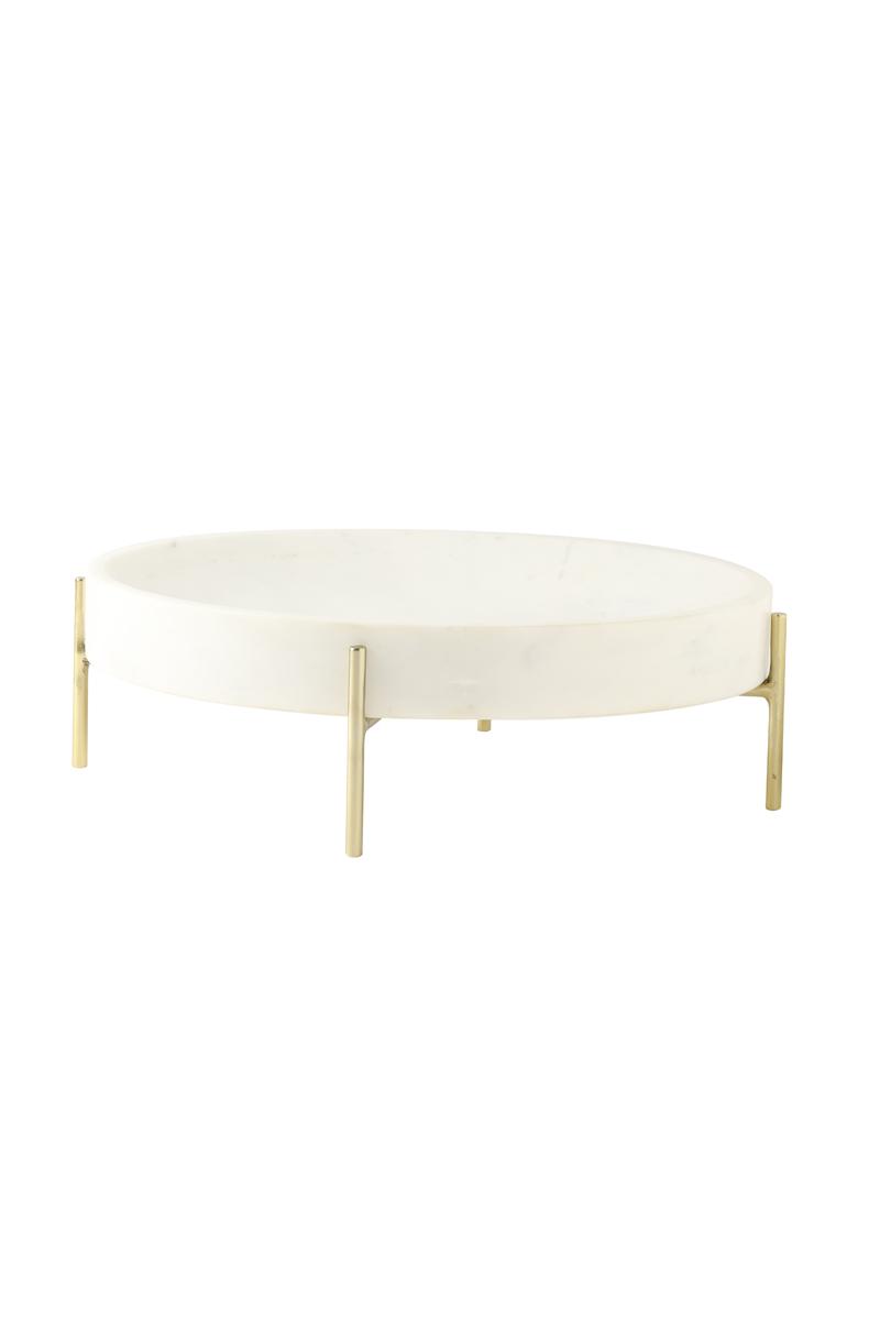 Elsemiek Schaal op voet Ø32×9 cm grijs-wit marmer+goud