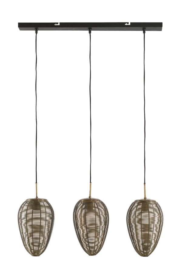 Yaelle Hanglamp 3L 80x20x33 cm antiek brons+mat zwart